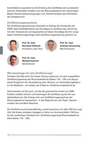 Zertifizierungsantrag der Rheumaakademie (Seiten 118 – 120) und das ge-