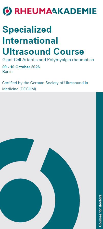 Ultrasound holds significant value in the diagnosis and differential diagnosis of giant cell arteritis. It is recommended in clinical guidelines (e.g., EULAR recommendations, German AWMF guidelines) as the primary diagnostic tool for confirming giant cell arteritis. Suspicion of giant cell arteritis can be effectively confirmed through ultrasound, particularly of the temporal and axillary arteries. With sufficient expertise, ultrasound can often replace a temporal artery biopsy. The introduction of fast-track clinics, in which rheumatologists perform both the clinical assessment and the ultrasound examination in a single visit, has led to fewer cases of blindness and significant cost savings. This course offers you the opportunity to expand and deepen your ultrasound skills. The course emphasizes hands-on patient examinations in small groups of no more than five participants. The instructors and tutors are highly experienced in the use of ultrasound for polymyalgia rheumatica and giant cell arteritis and will help you become more confident in diagnosing these conditions.